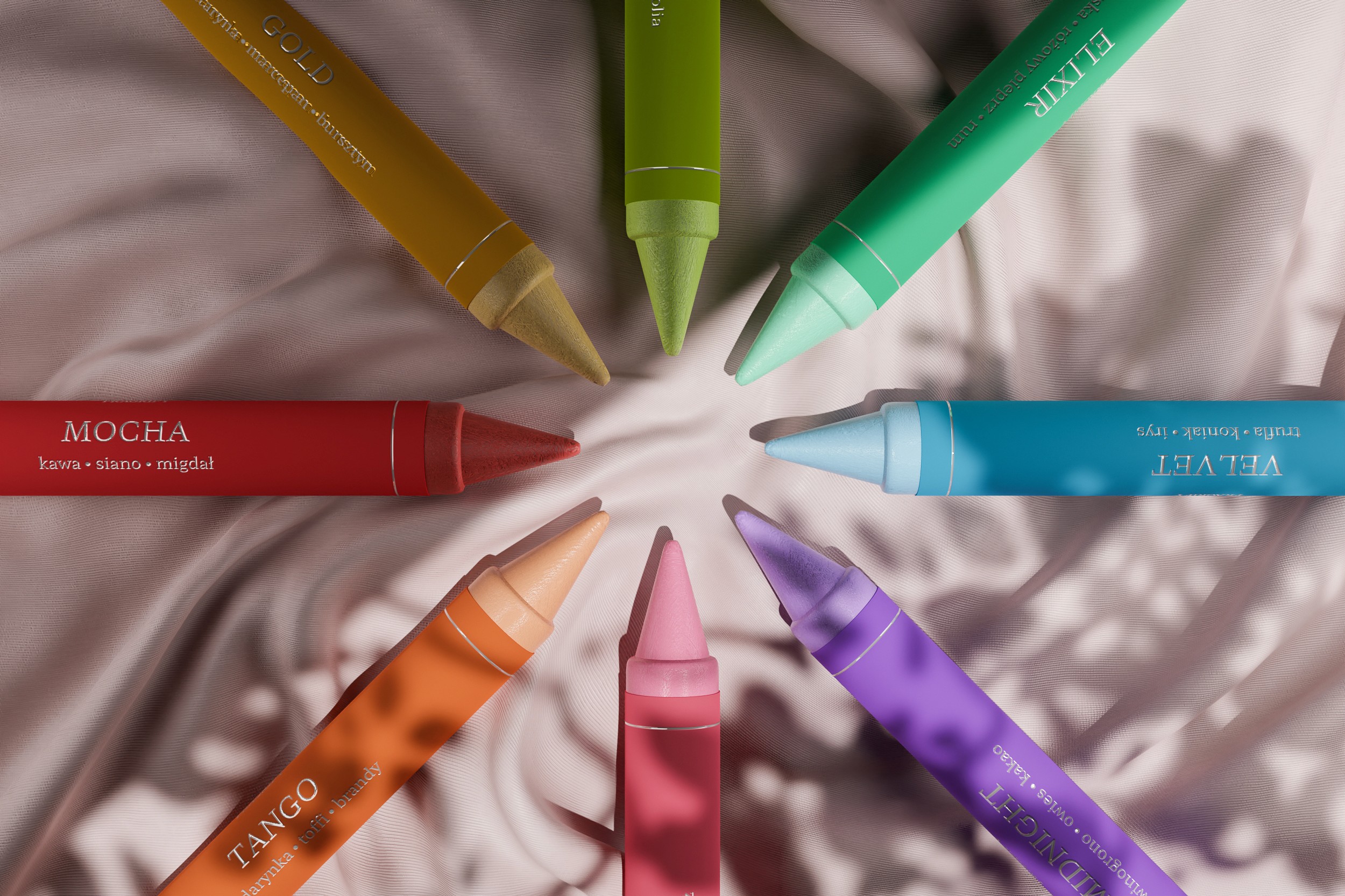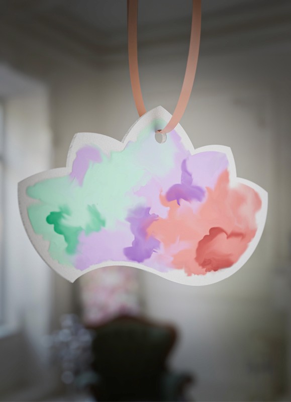 The set includes eight colorful soy wax pieces in the form of crayon-like sticks, as well as three cardboard templates that allow users to create their own scented hangers. By drawing custom shapes with the wax and then melting them using warm air, users can produce unique objects with a personalized visual and olfactory character.